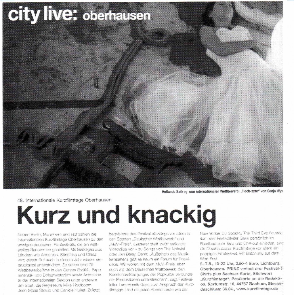 PUBLIKATION: WEDDING BELLS / HOCH-ZYTE IN CITY LIVE, OBERHAUSEN