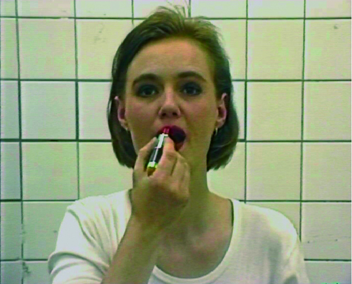 A face appears on the screen. White, new, fresh, it contemplates itself like in a mirror. The hands touch the face, start to prepare it like one prepares a terrain to welcome something strange. Foundation, powder, make-up … not forgetting the hair, the essential feminine ornament. The more make-up covers the face, the more agitated the person starts to act. Make-up which at times can help you dream, erase undesired blemishes, in this case reveals the deeper troubles of this woman, of whom we start to perceive her self-destructive nature. At the end all that remains is a battlefield, the make-up has turned into a painting of the battle against on self – also against us as spectators facing this face.