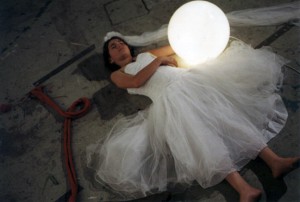 The dreamlike setting of “Hoch-Zyte” (Wedding Bells) shows three women and their multilayered fantasies and dreams about marriage and their wedding day. An 11-year old girl is knitting a “wedding stocking” (Hochzeitssparstrumpf) used to collect money for her dowry. The knitted stocking is getting longer and longer, since a wedding seems not in sight. She is dreaming and waiting for her “prince on the white horse” who does not appear – not yet. A second woman, she could be the girl’s mother, is reminiscing about her own wedding long ago. A third woman, a young maid, is the imaginary bride. In a wedding dress she dances through several scenes in the arms of the groom. A he-goat, dead crows, eggs, a dancing bridal couple and a girl, who is lying on the ground like Sleeping Beauty, are symbols which allude to fairy tales, myths or ghostly dreams. “Hoch-Zyte” can also be interpreted as the life-story of a single person viewed from changing points of view and different phases of her life.