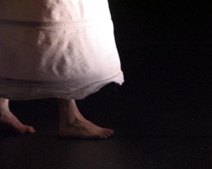 In Krinoline (Crinoline) we see someone in a hoop / crinoline stepping into a black space. They are not dance moves, but still they remember a strict motion path to a ballet -like performance. Sometimes the movements are grotesque, sometimes clumsy, sometimes tenderly soft. A voice of a man whispers, as if no one can hear his suffering love. A further experience is the processed sound of footsteps, the hoop, but also added sounds like the beat of a heart monitor, the ticking of a clock, the soft rustle of a tree or a stream. In a nonverbal way, here given ingredients to excite your associative ability.