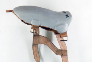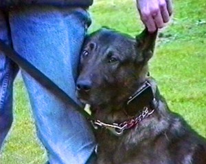The installation consists of 5 video’s and 1 object. The video’s are taken at the dogpoliceguards and shows short fragments of the training of the dogs as policesdogs. The full attention goes towards the dogs, which are portraitet as neurotic, stressed animals, educated to serve as a weapon, the agents are not in the picture. This atmosphere is underlined in the monotonous repeating of the video’s, the soundtrack as well reveals in its monotony its machinery source, but alienated, and the tool hanging on the wall from the wall made out of plastic, leather and artificial fur.