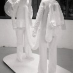 This work shows two human figures wearing fantasy astronaut suits. Like Siamese twins they seem to be connected with each other. They are totally isolated from their surrounding, but at the same time they are infinitely intimate in their correlation.