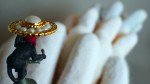 35 x 35 x 20 cm, wood, gold, gilded silver, pvc, plastic, felt, tar